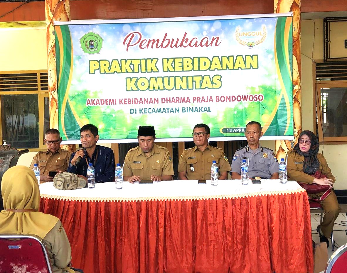 Akademi Kebidanan (Akbid) Dharma Praja Bondowoso secara resmi melaksanakan pembukaan Praktik Kebidanan Komunitas yang bertempat di Kecamatan Binakal, Kabupaten Bondowoso. Kegiatan ini merupakan bagian dari implementasi pembelajaran lapangan bagi mahasiswa dalam rangka meningkatkan kompetensi serta keterampilan praktik kebidanan secara langsung di tengah masyarakat.